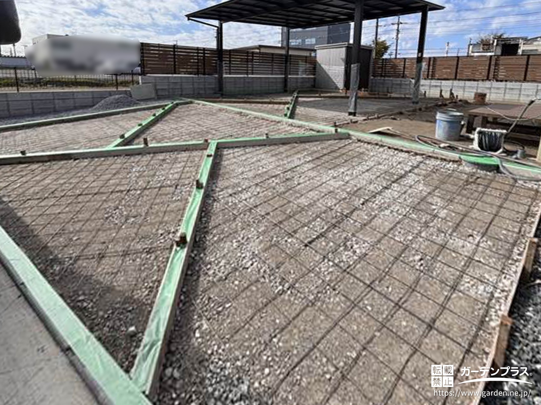 こちらは、区画ごとに鉄筋メッシュを入れた駐車スペースです。