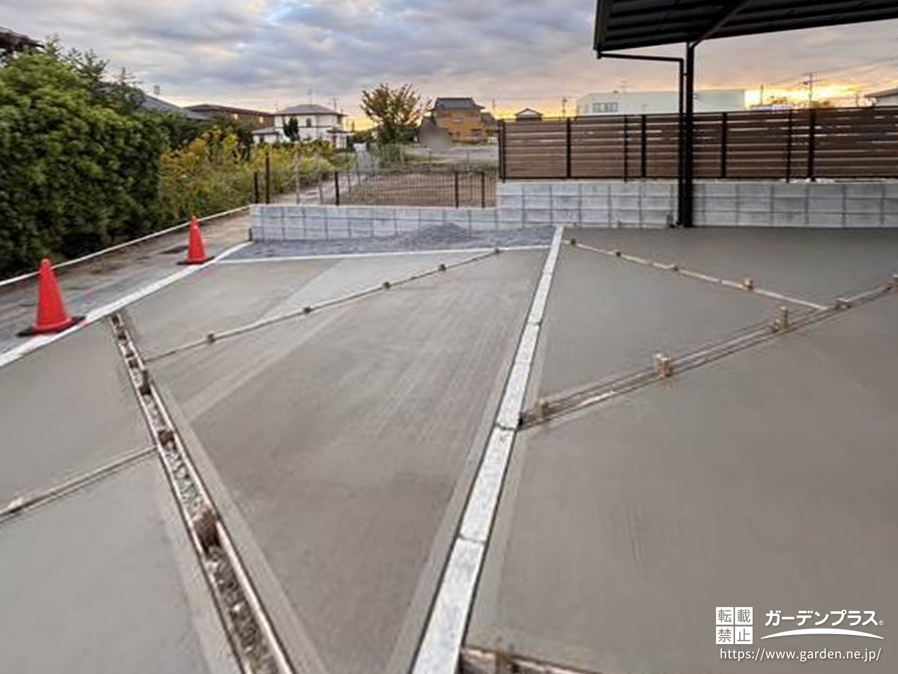 夕方の空の下でコンクリートが整っていく様子を見ていると、理想のお庭が少しずつ形になっていくのを感じられる、ワクワクな時間です☆