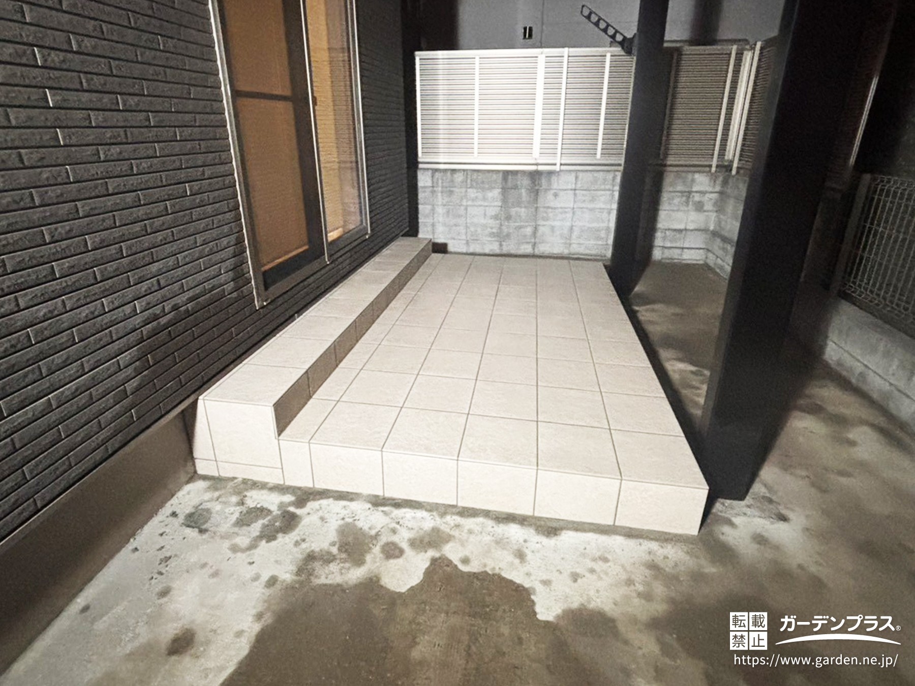 タイル貼り工事が完了し、ウッドデッキからタイルデッキの完成です!