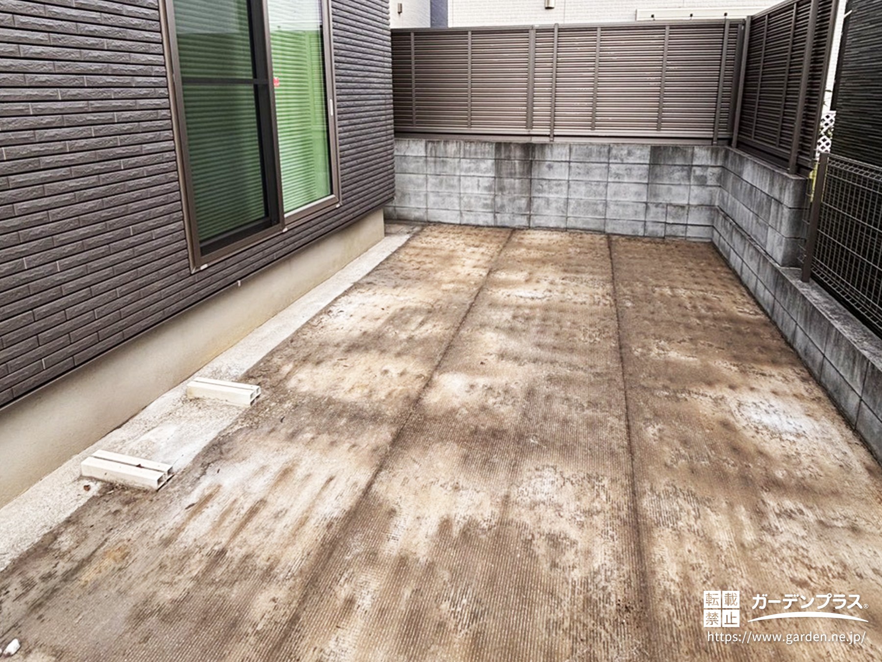 既存のウッドデッキや敷石、敷板、人工芝などは撤去した写真になります!何も無くなってしまって殺風景になりましたが、これからおしゃれなお庭を作っていきます♪