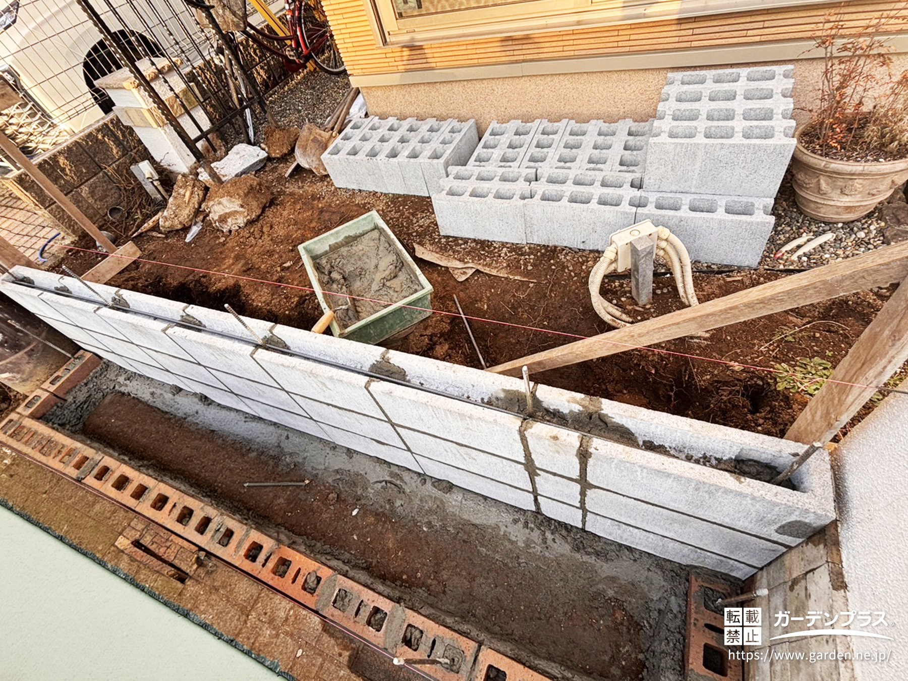 ブロック塀 施工中の様子