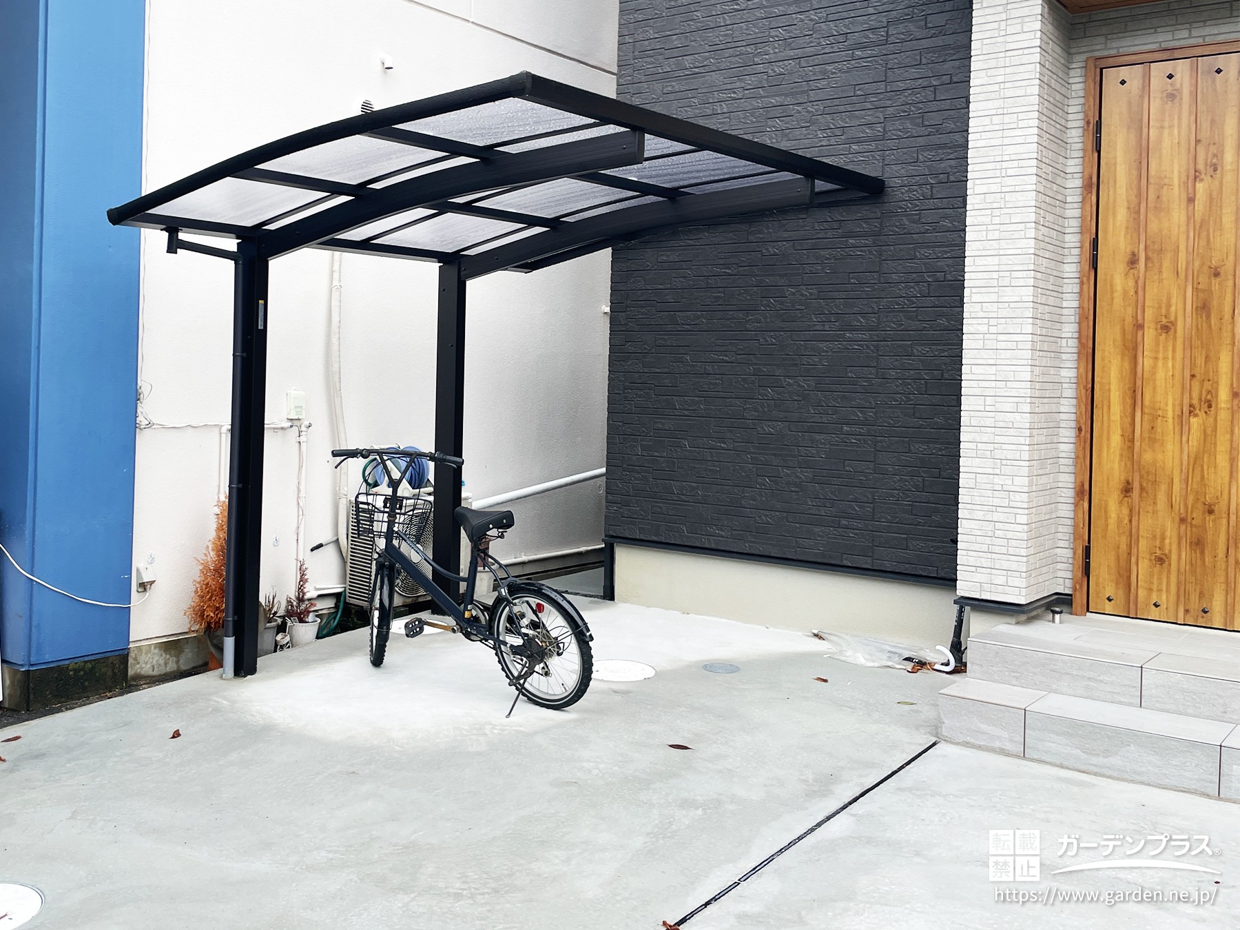 玄関まわりの限られたスペースを活かし、日常使いの自転車を雨や汚れから守るため屋根を設置しました。