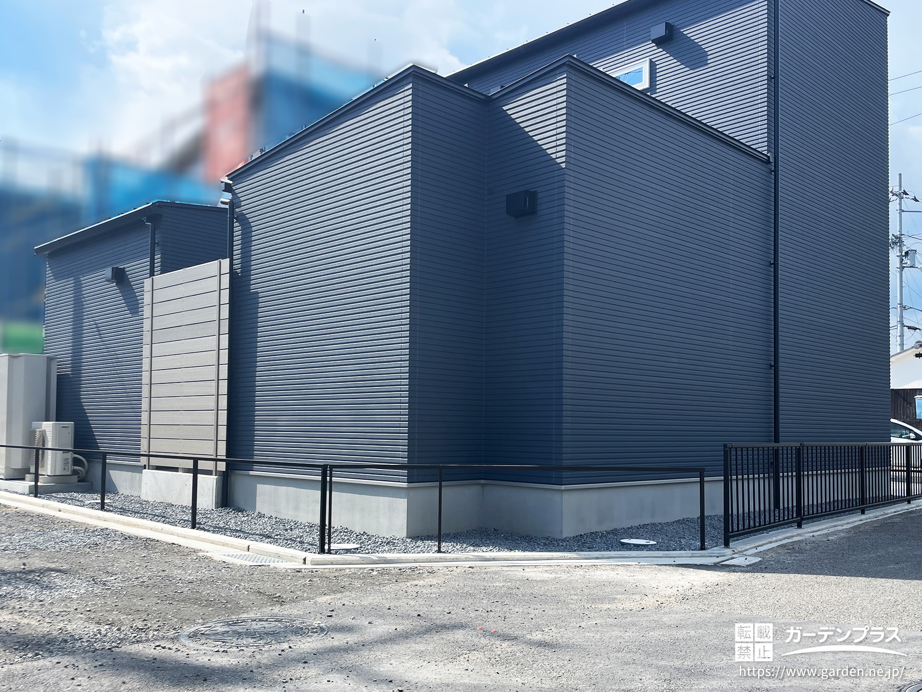 シンプルなデザインのフェンスの設置で敷地境界を明確化
