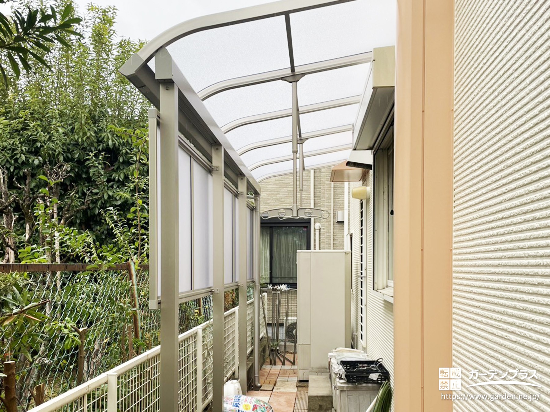洗濯物を見られないように目隠しの機能も付けたテラス屋根