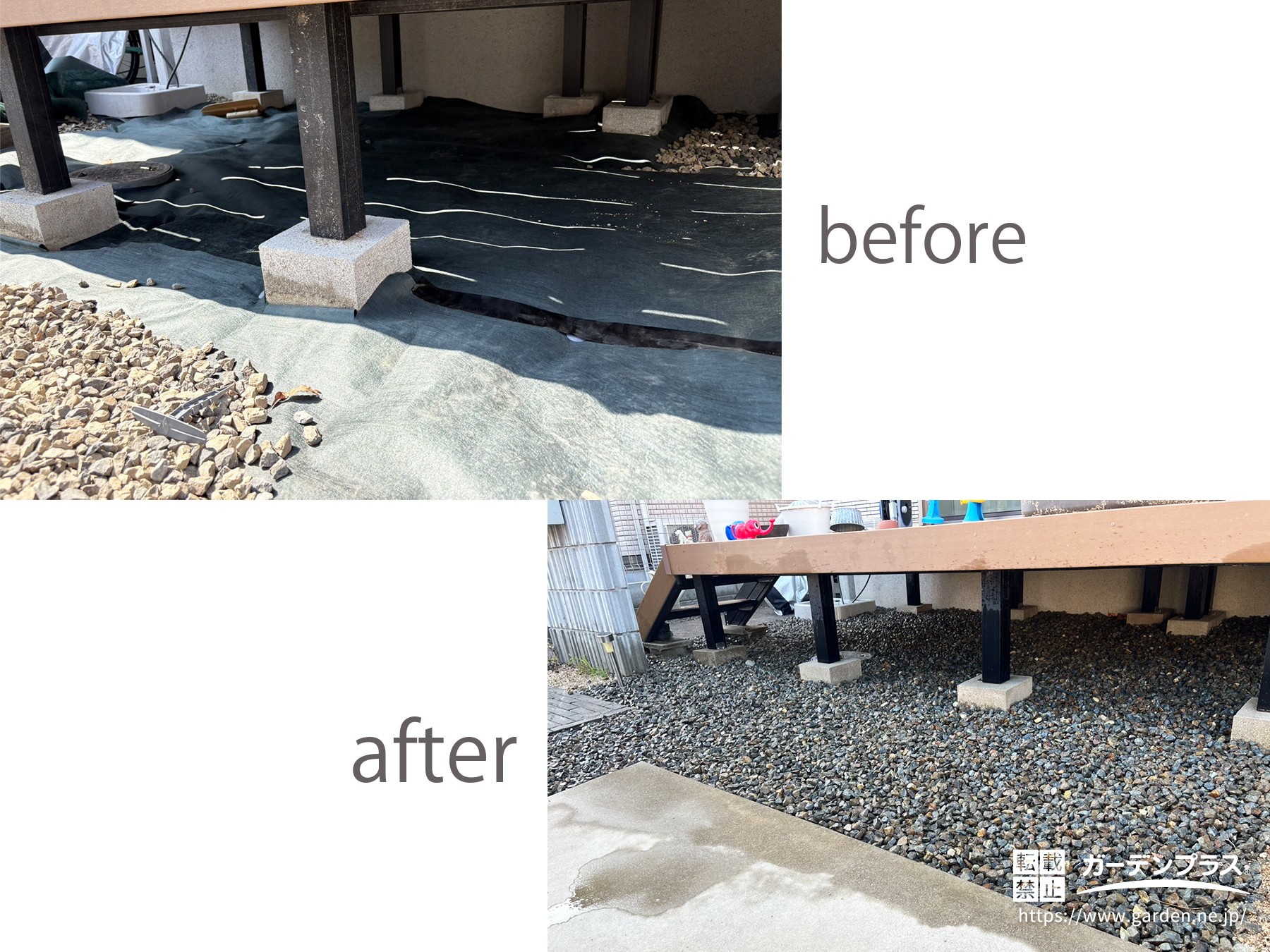 ウッドデッキ下も「防草シート・砂利」で雑草対策を