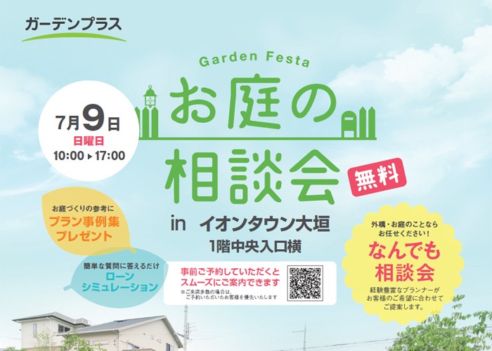【岐阜店】7/9(日)にイオンタウン大垣 1階中央入口横にてお庭の無料相談会を開催いたします!