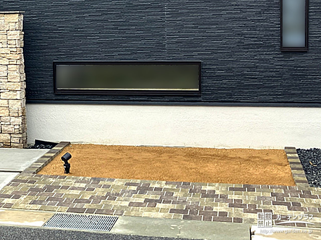 植栽スペースの前部分は、自然な風合いが感じられるコンクリート平板の