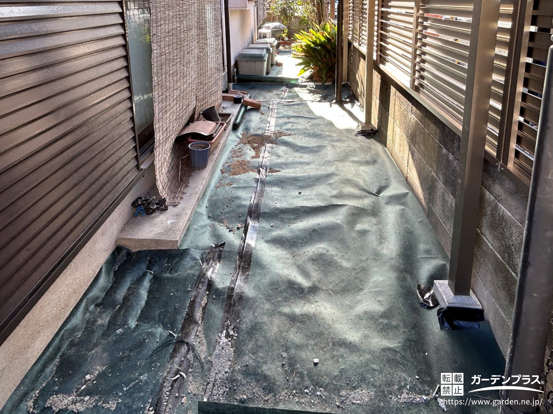 今回はリフォームの一環として、表面の土をほどよく取り除き、防草シートと砂利を敷設して、雑草対策と美観の向上を同時に叶えます。