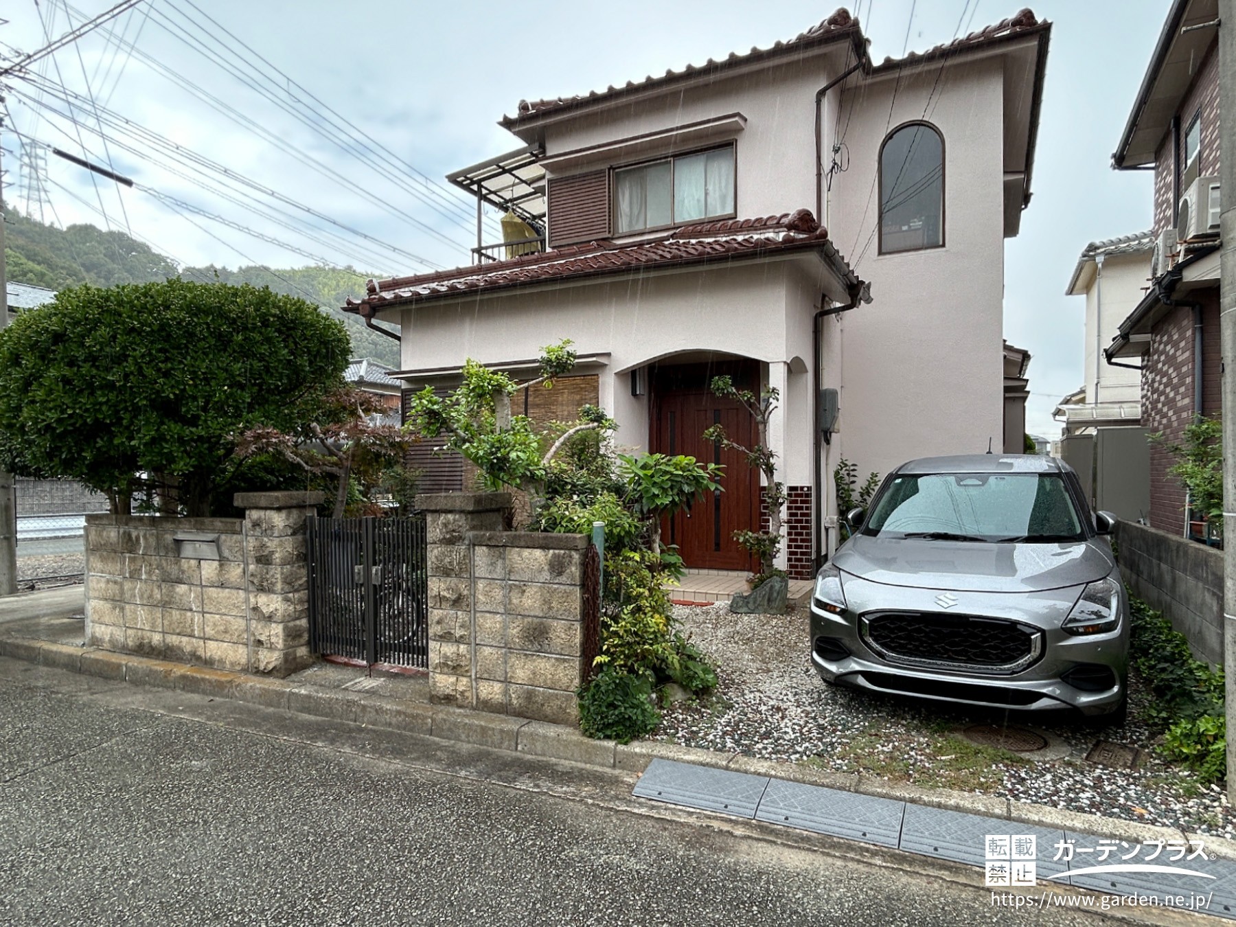また、お住まいのそばに植えられていた金木犀も大きく枝を伸ばして道路側へ出ていたため、植栽の剪定を行い、駐車スペース全体がすっきりとした見栄えになるようリフォームしました。