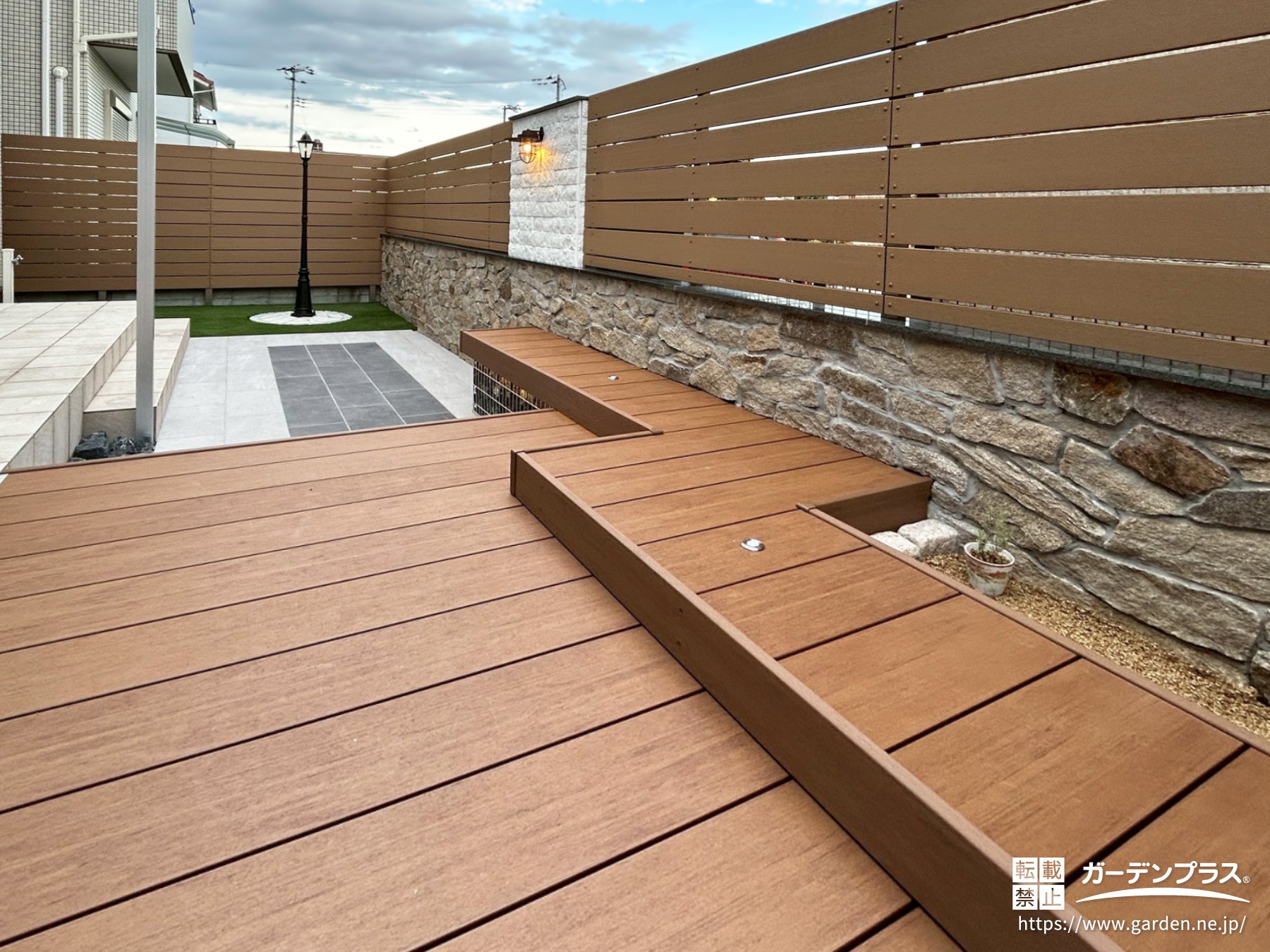 隣地境界には土新建材の『エコモックフェンス』を施工してしっかりと目隠し。