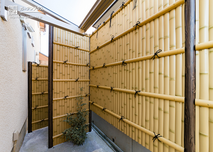 こちらは和風のお庭におすすめの竹調フェンス。タカショーから発売されているe-バンブーユニット建仁寺垣です。見た目や質感は天然の竹そのものですが、こちらもアルミ製のエクステリア商品。天然の竹は経年劣化で割れることがありますが、その点アルミ製なら安心です。1m当たりのお値段が28,661円~と少し値の張る印象ですが、毎日目にするお庭を美しく仕上げたい!という方におすすめの目隠しフェンスです。優しい竹の効果で圧迫感もなく、隣接するお宅からも喜ばれそうですね。