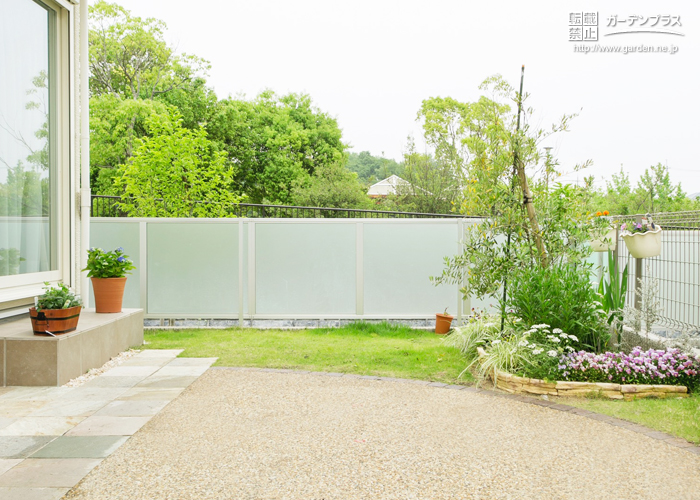 こちらは花壇のあるお庭。四季折々の草花がご家族のくつろぎの空間を彩ります。