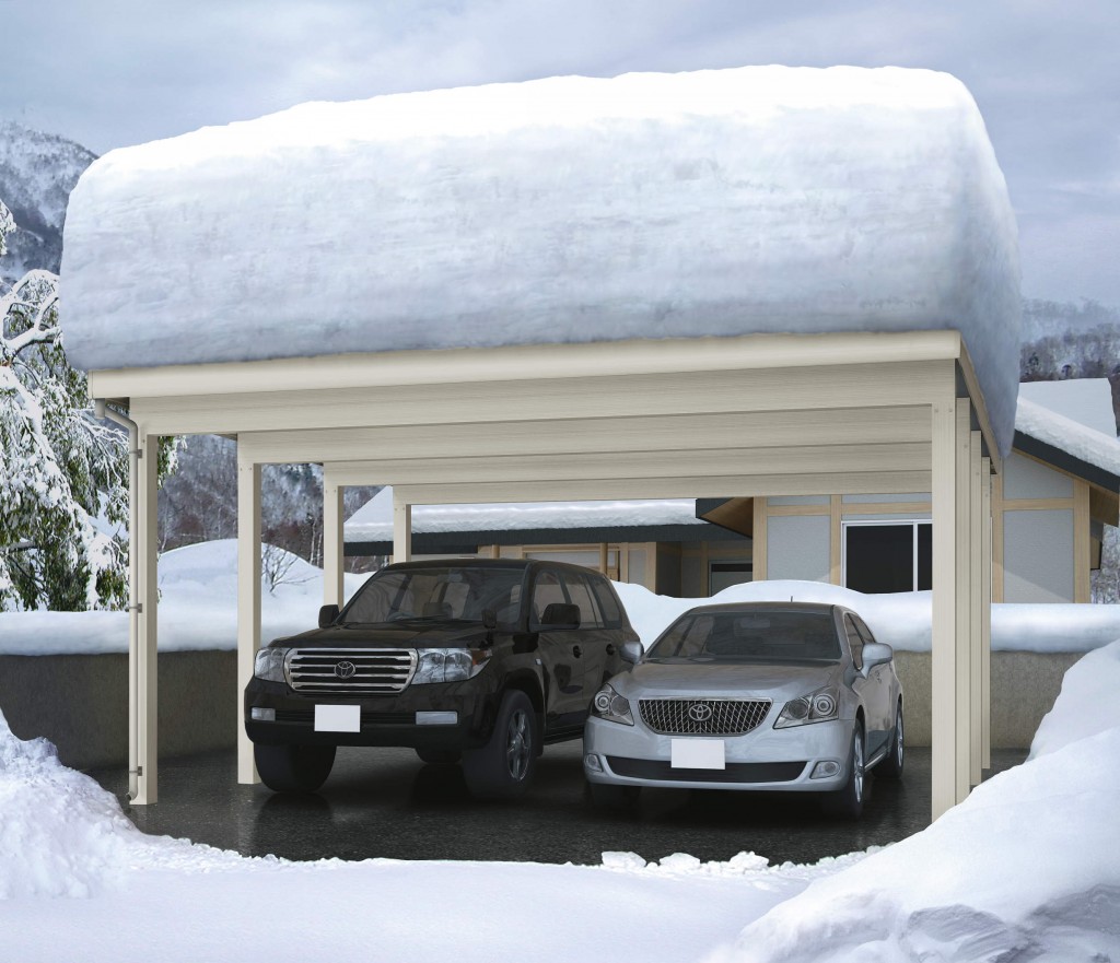 豪雪地域なら耐雪性能の高い折板タイプのカーポートがおすすめです。ポリカーボネートの屋根材では、雪の重みに耐えられず屋根材が落下してしまう恐れがあります。記載されている耐雪強度はあくまで目安です。雪質によっては重量がありますので、耐雪性能には余裕を持ってカーポートを選びましょう。