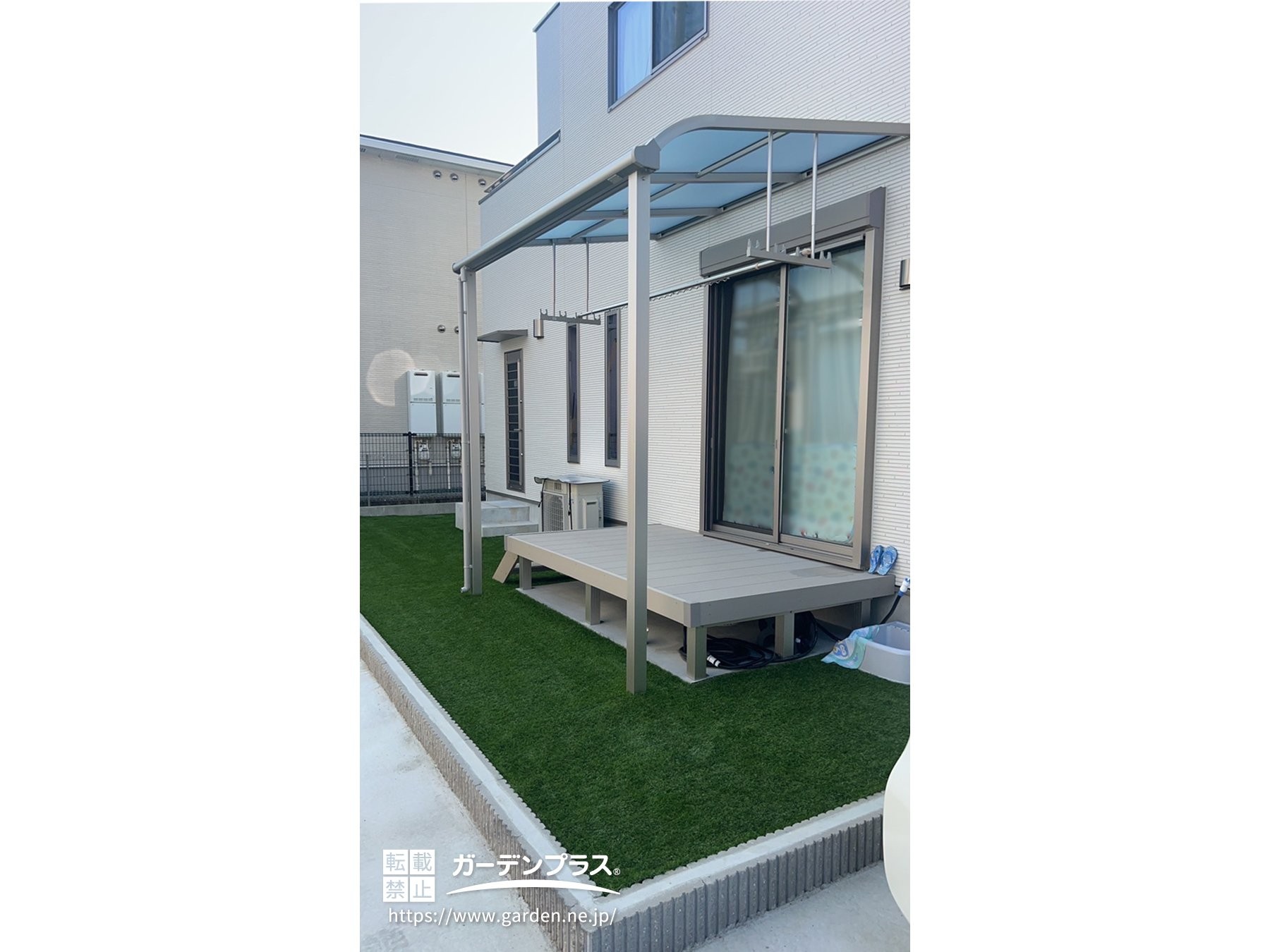 ・【人工芝×テラス屋根×ウッドデッキ】雨の日の洗濯も安心の庭