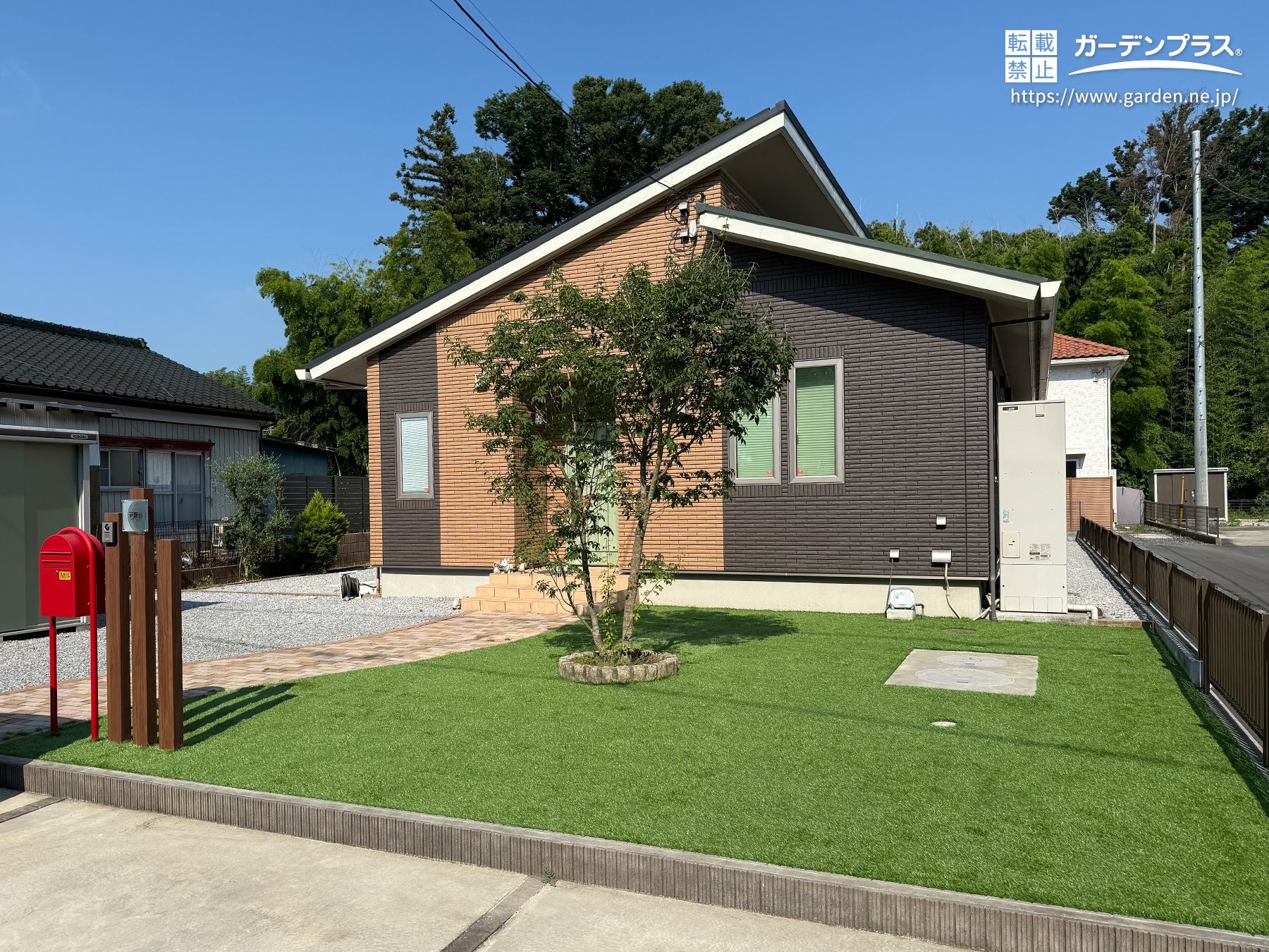 天然芝は季節によって色が変わったり、生長して芝丈が長くなったりしますが、人工芝は季節に左右されず、常に美しい緑を維持できるので、一年中お庭全体が明るく見えます。