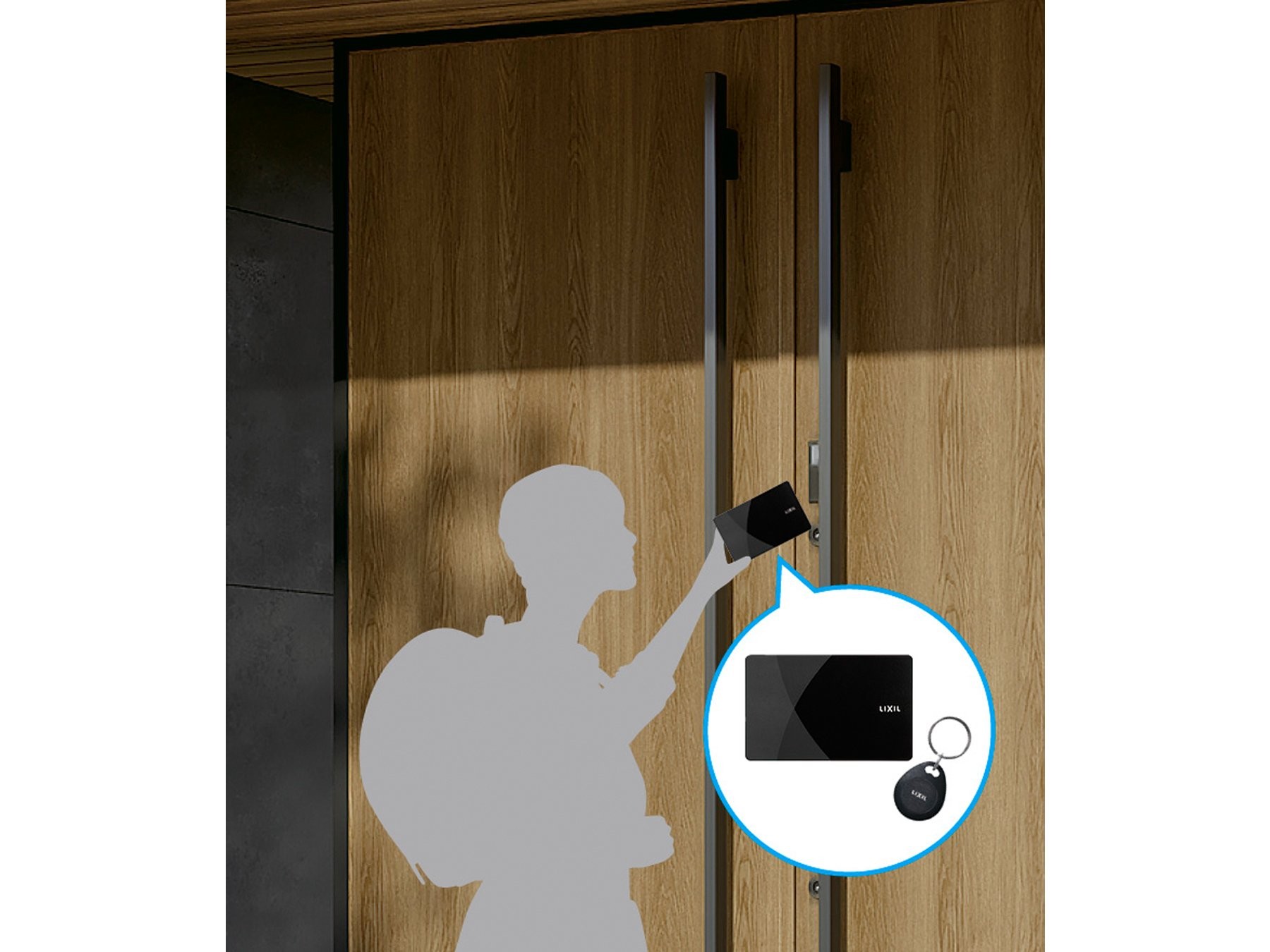 かざすだけで開けられるシンプルな鍵。家族用や来客用にも便利です。