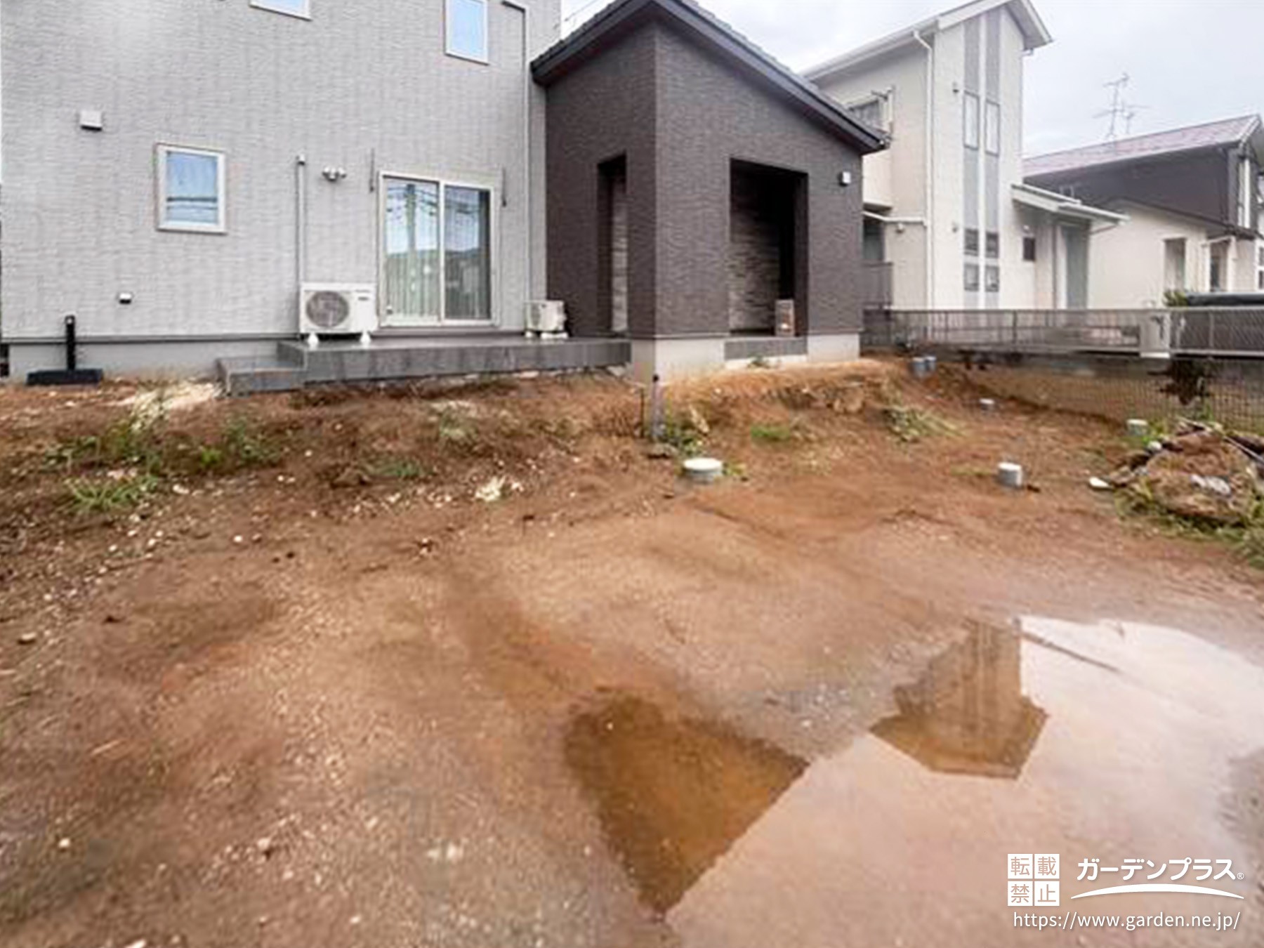 前日に雨が降ったことで地面に大きな水たまりが残っており、まだ土がしっとりしていますね(゚_゚;)広々とした敷地では、こうした雨のあとはぬかるみやすく、お住まいの出入りも少し大変になりがちです。