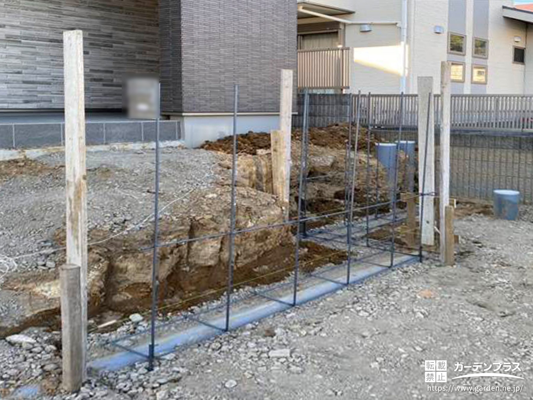 さらに土圧がかかるブロック内部に鉄筋を入れずに積んでしまうと、後々の傾きや倒壊につながる可能性もあるため、こうした基礎づくりは外構全体の安全性を左右する大切なポイントなんです(゚Д゚)
