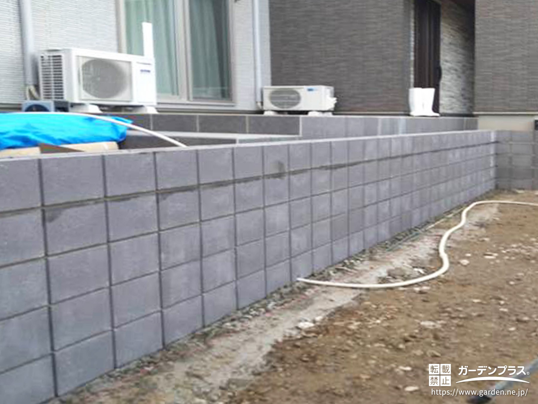 残土掘削工が終わったお庭では、次の工程としてブロック積みの作業を進めていきます。