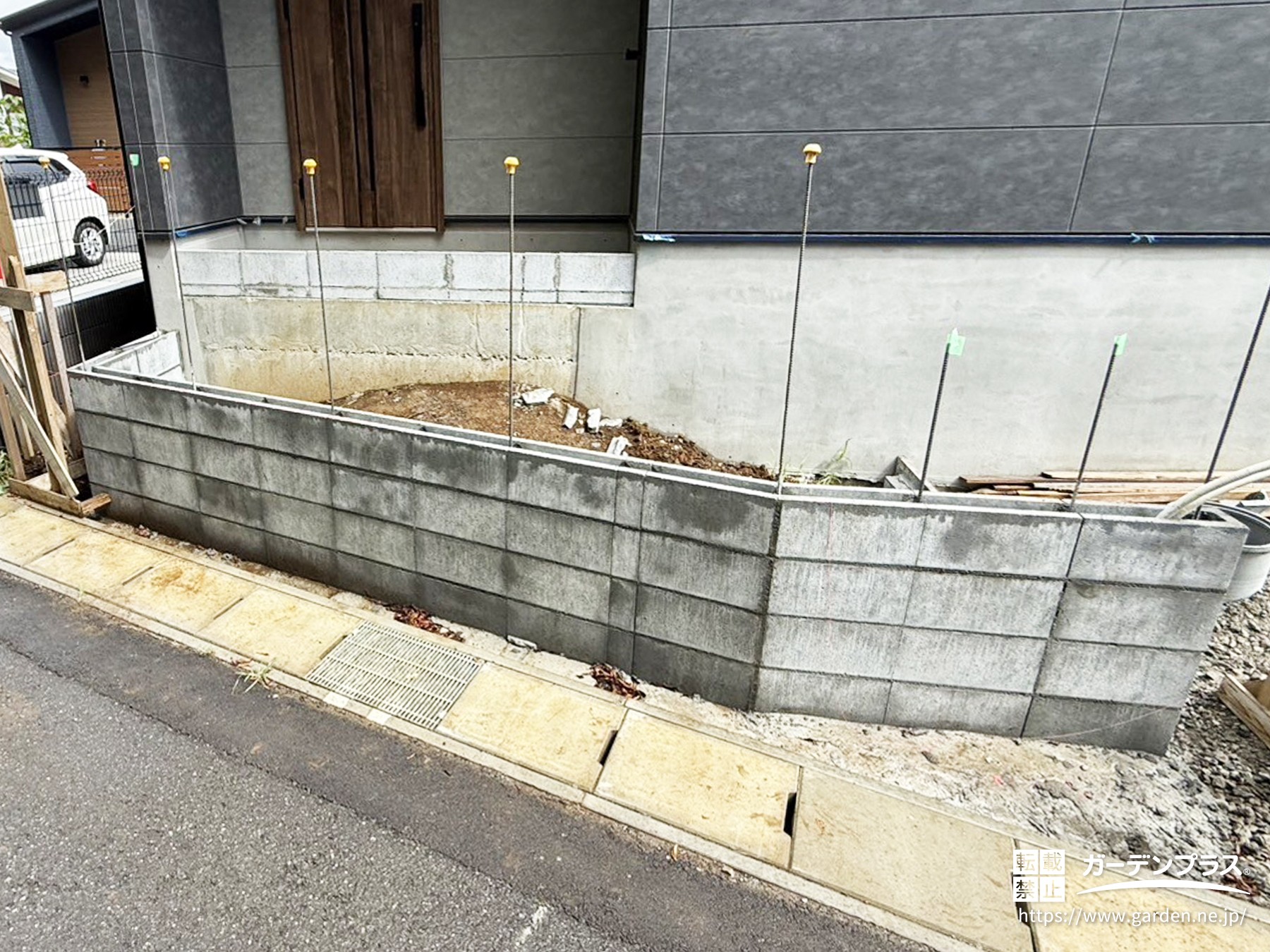 こちらの写真は、造作門柱のブロック積みの様子です♪