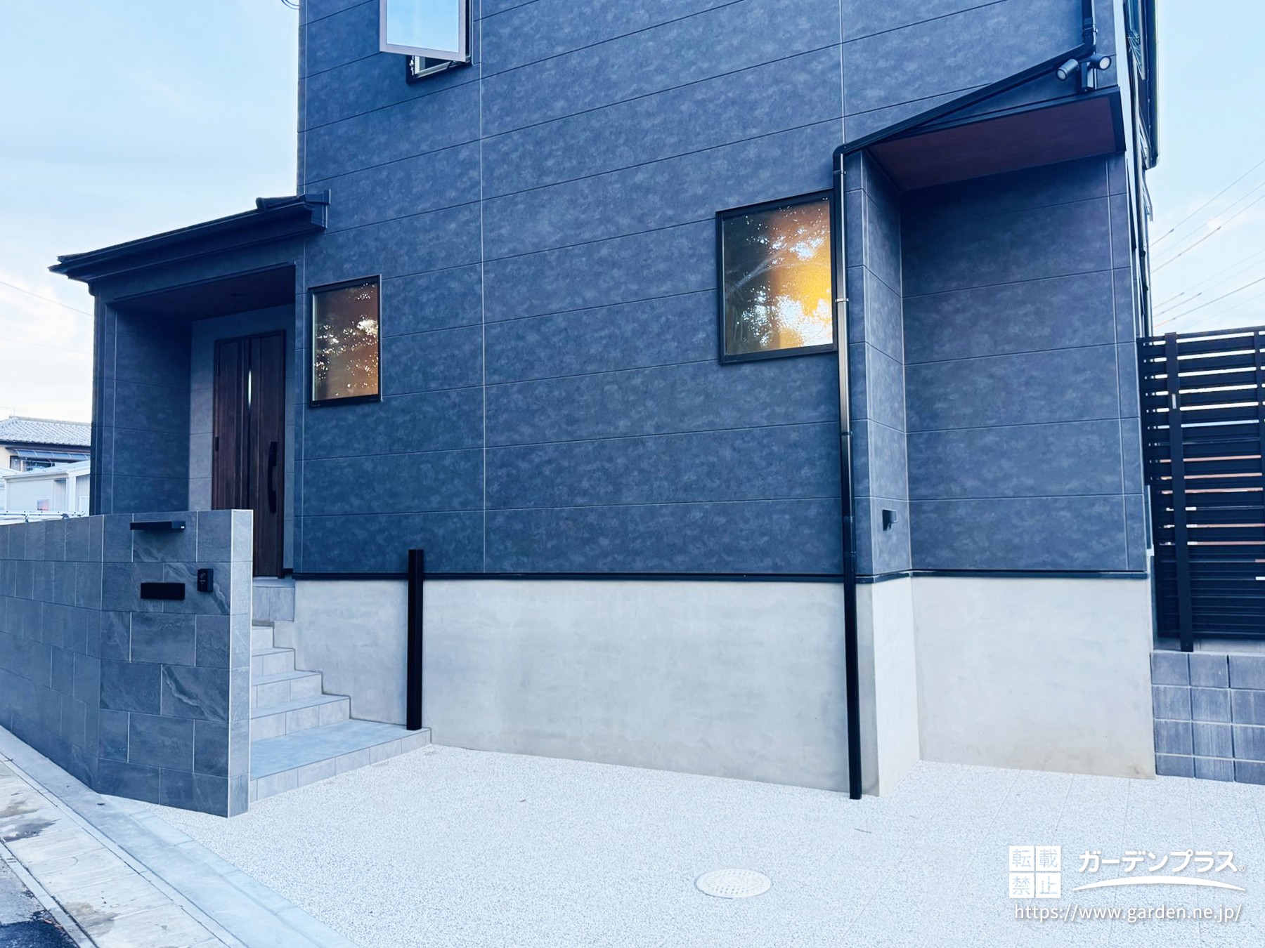 かっこいいモダン外構に似合うタイルの造作門柱が素敵な新築外構工事例♪家に帰るのが楽しみになる空間が完成しました☆