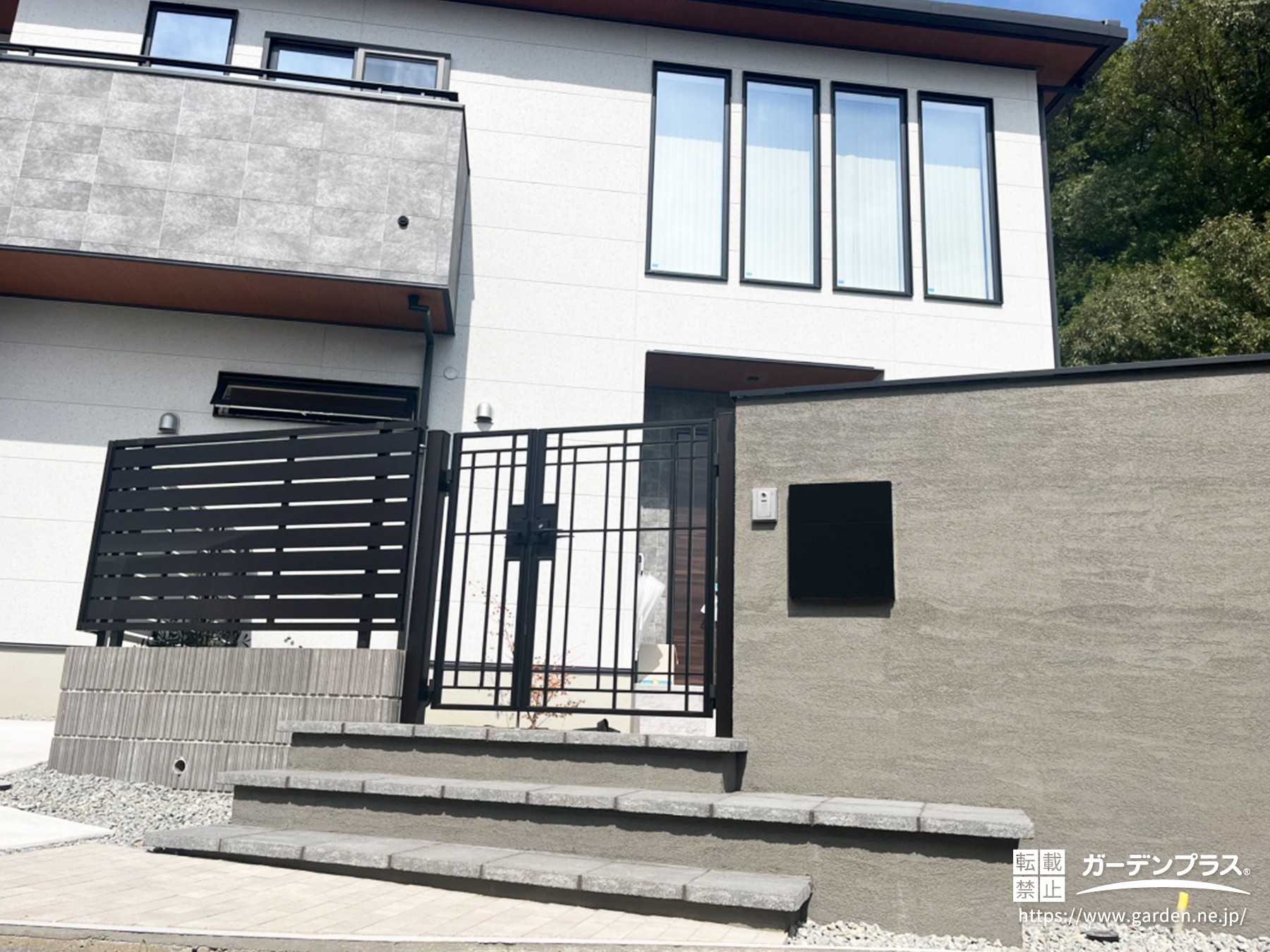 ブラック×グレーで建物にも似合う外構が完成しました♪