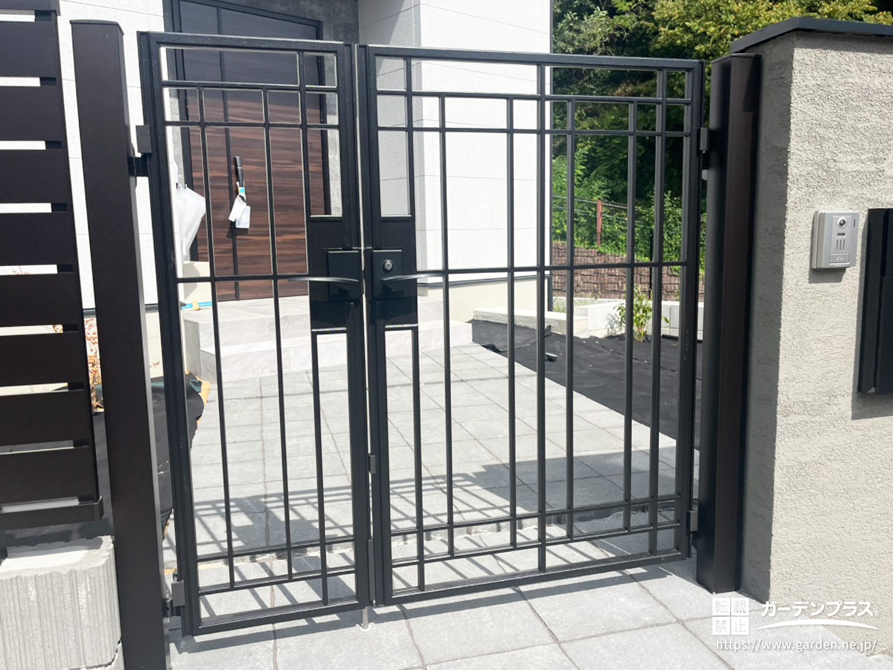 フェンスに合わせて門周りも黒で統一♪