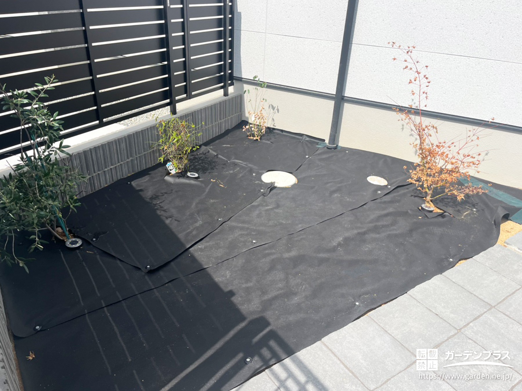 防草シートを敷いて、お客様のお好みのデザインに