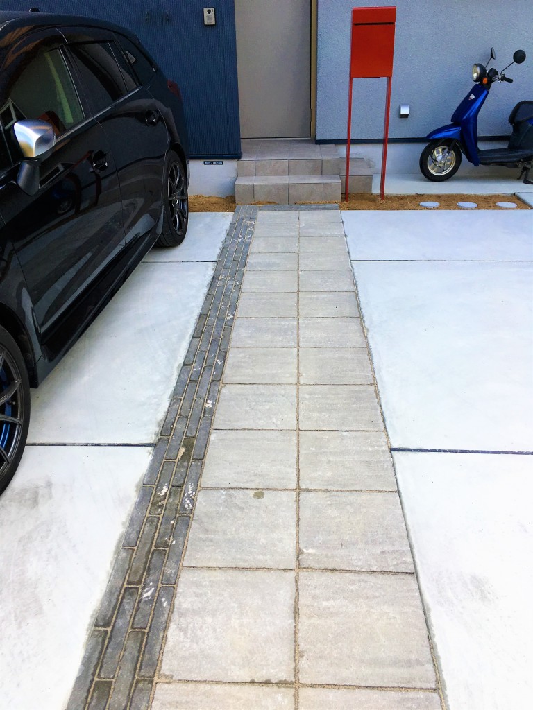 そして玄関に続くアプローチはインターロッキング舗装に仕上げました。