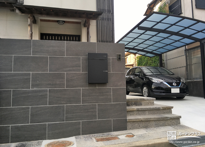 タイルやポスト等もカーポート同様、ご自宅との一体感を演出するためブラックを選択。シックで趣のある門になりました。