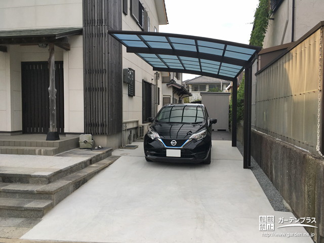 そして雨の日でも乗り降りが楽になるようカーポートを設置。使用いたしましたのはYKKAP社の「レイナポートグラン」です。本体の色をブラックにすることでご自宅との調和をはかりました。