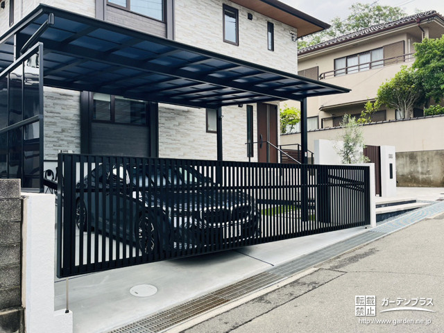 カーゲートは高さを最大サイズにし、間口の長さに負けない重厚感のある、LIXIL社「ワイドオーバードアS4型」をセレクトしました。