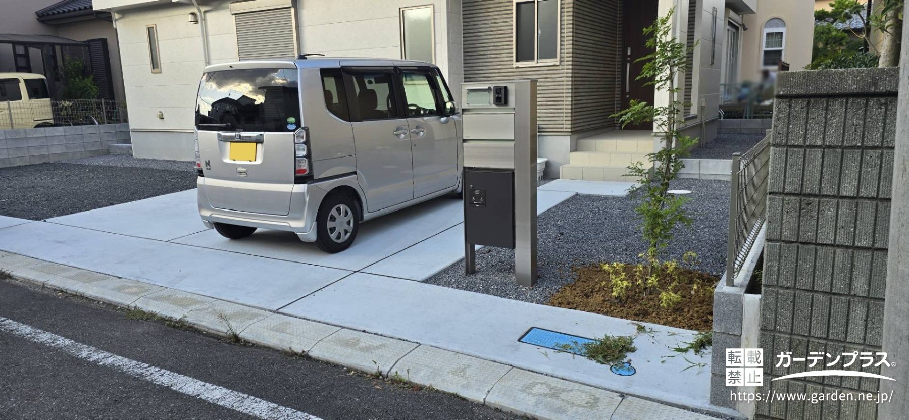 駐車場スペースと通路になるところに土間コンクリートが打たれた、シンプルなオープン外構でした。