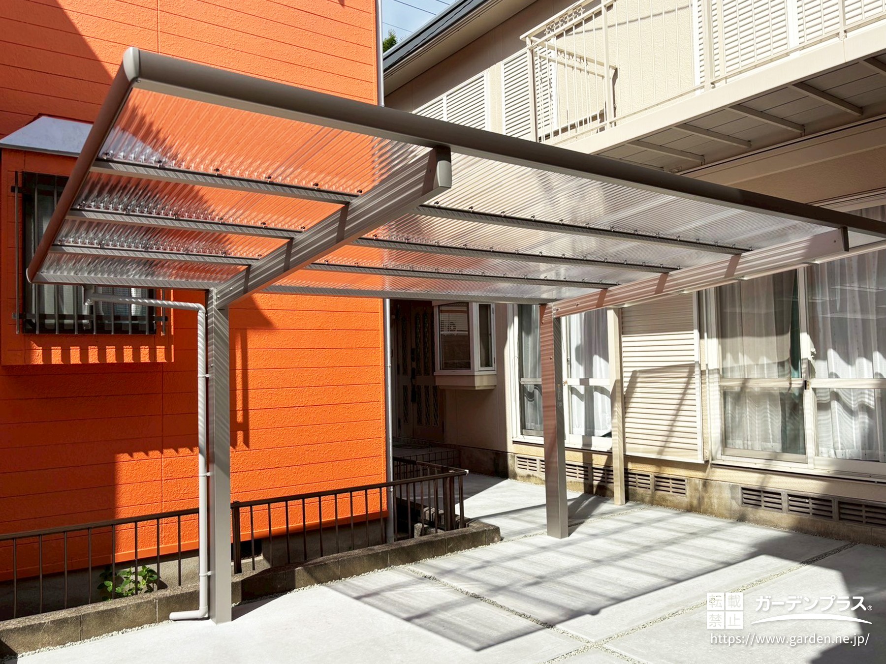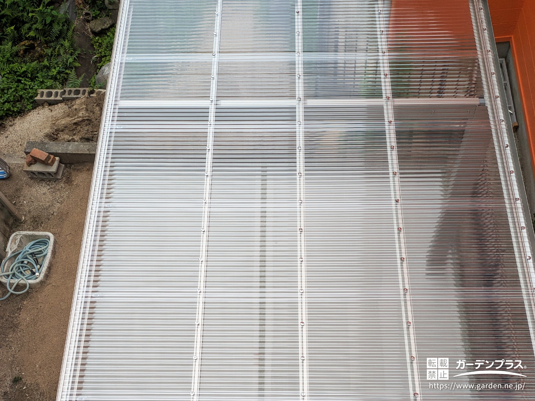 屋根材は波板のポリカーボネートをご選択されましたが、その理由は、屋根材がいずれ劣化や交換の時期が来た時に、ご自身で施工(DIY)できるものをお考えになったためです。波板はフックで固定する簡単な構造で、量販店でも調達が可能な商品です。以前お施主様は、旧式カーポートの波板を交換したご経験があるそうで、将来の維持管理まで見据えた「バイク乗りならでは」の賢い選択と言えます。