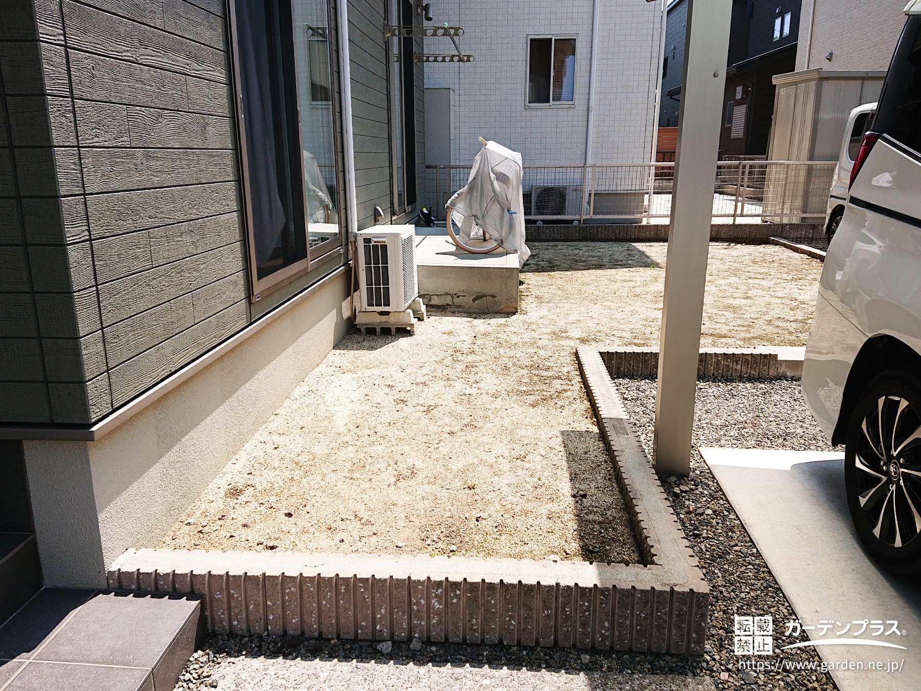 段差のある庭を駐車場にリフォーム工事!お子様の将来も考えた設計です!