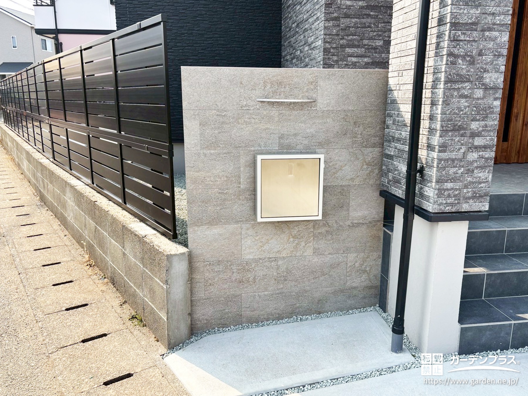 ポストは取っ手などの突起部がない、すっきりとしたデザインのユニソンの「ヴィルク」を採用し、シンプルながらもタイル門柱のモダンな雰囲気と非常にマッチした仕上がりになっています。