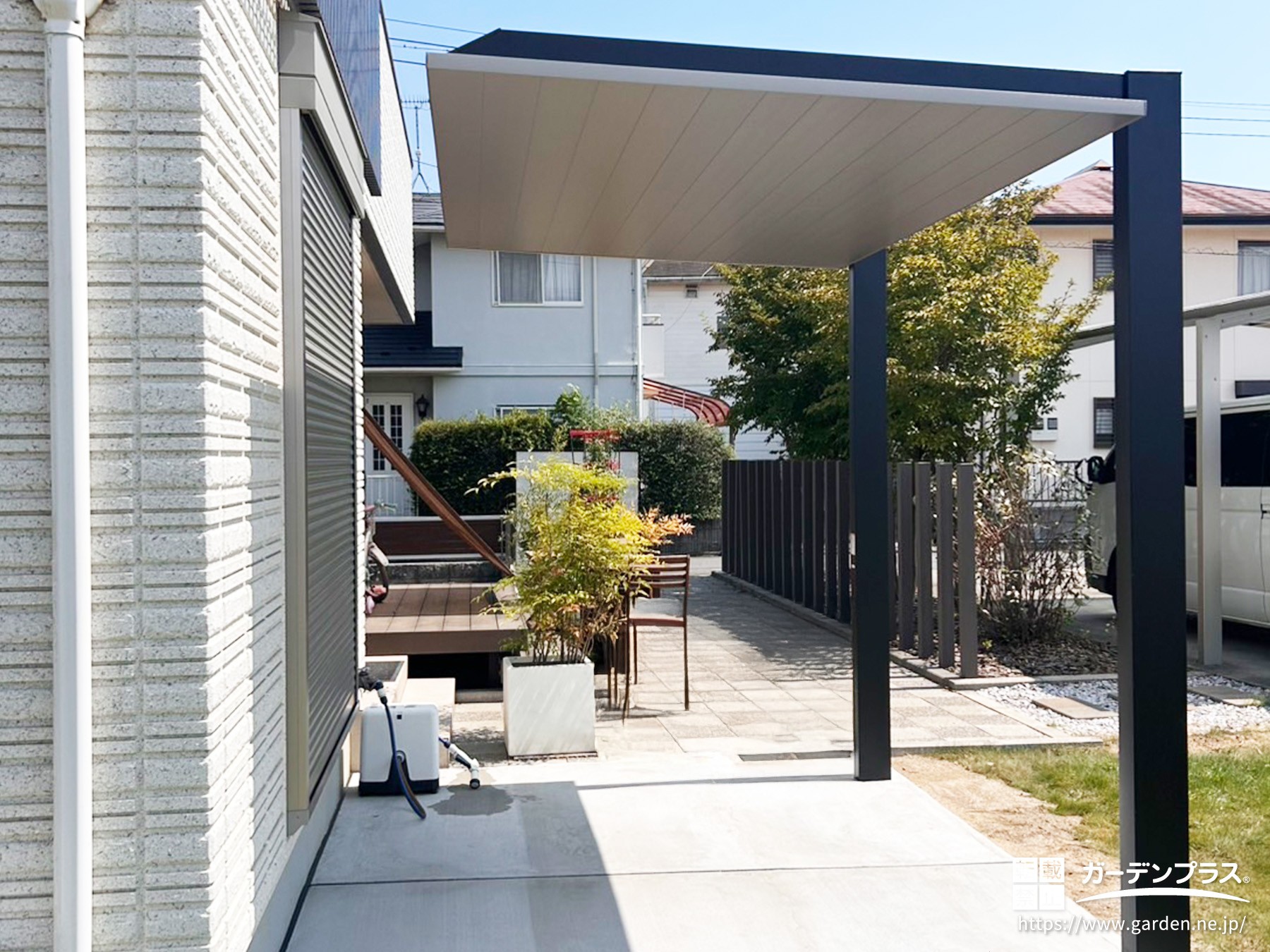 こちらは、建物と調和するシンプルなデザインのカーポート、
