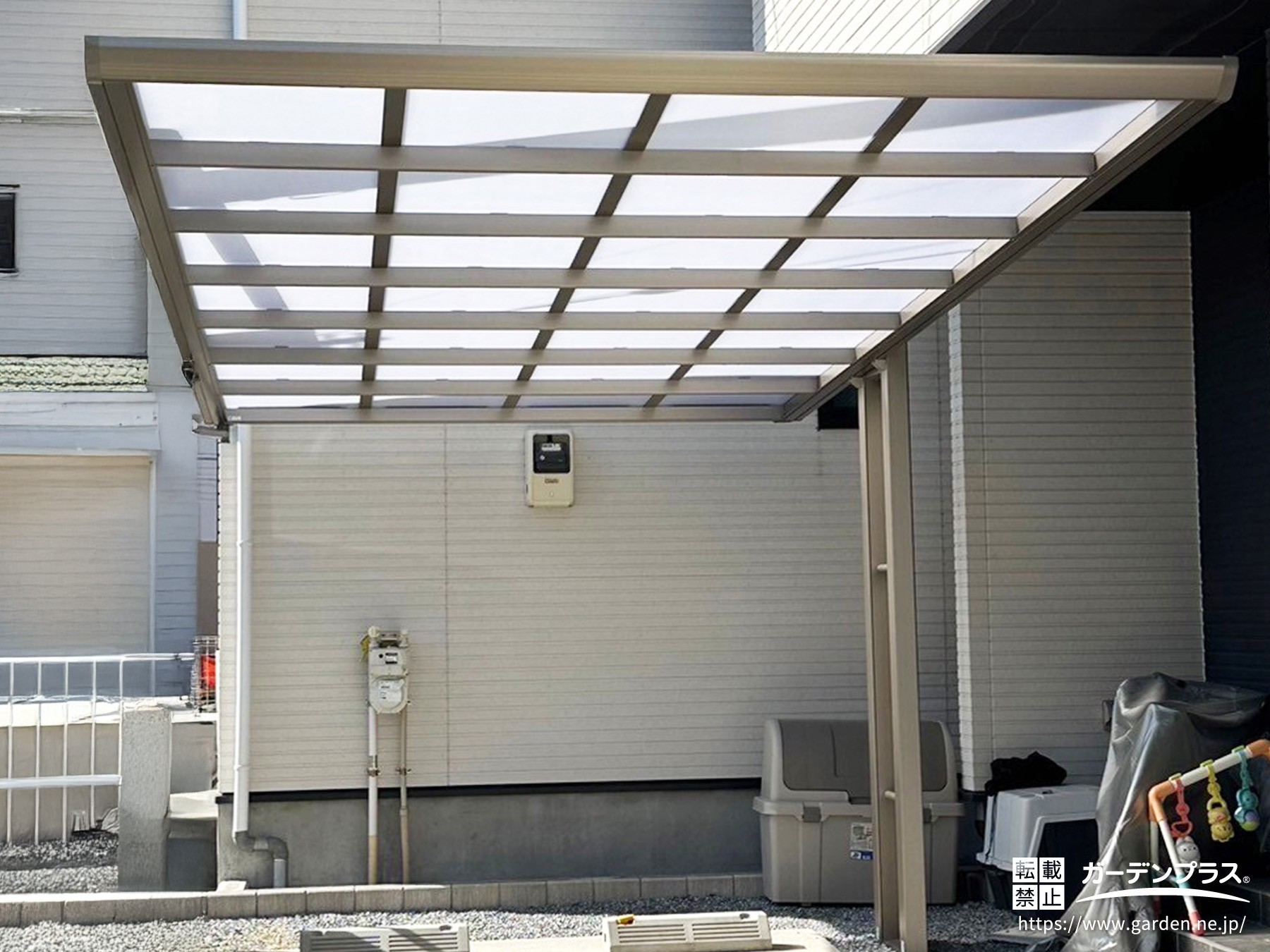 前方がすっきり開ける後方支持デザインが魅力のこちらのカーポートは、