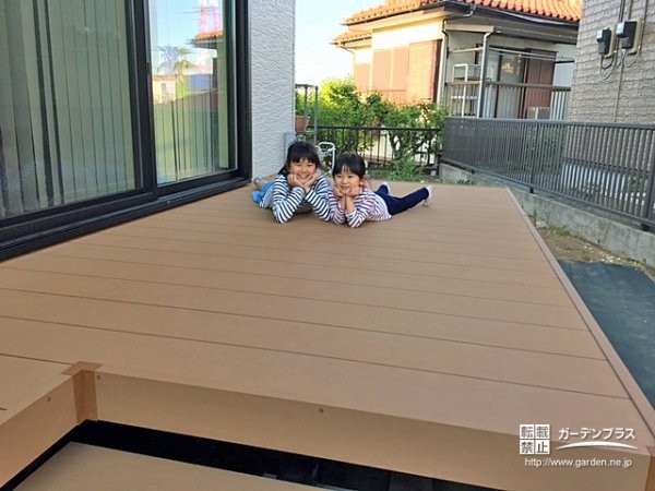 施工例① 優しい触り心地のウッドデッキ設置工事