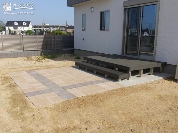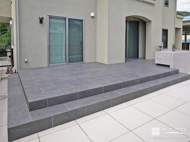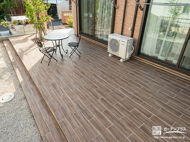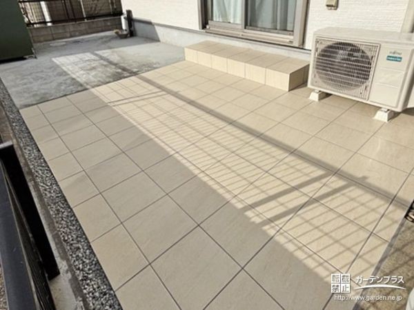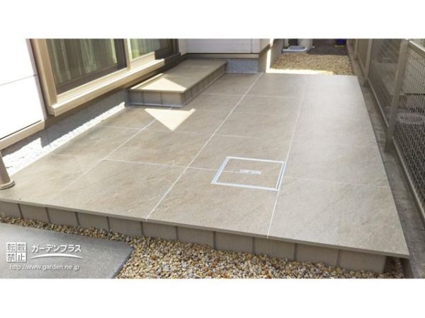 施工例③ 段差のないフラットなスタイルのタイルテラス