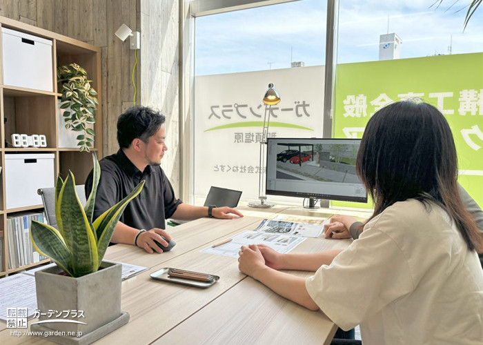 店舗でのお打合せでは、作成した外構デザインのシミュレーションをCGで動かすことが可能です!