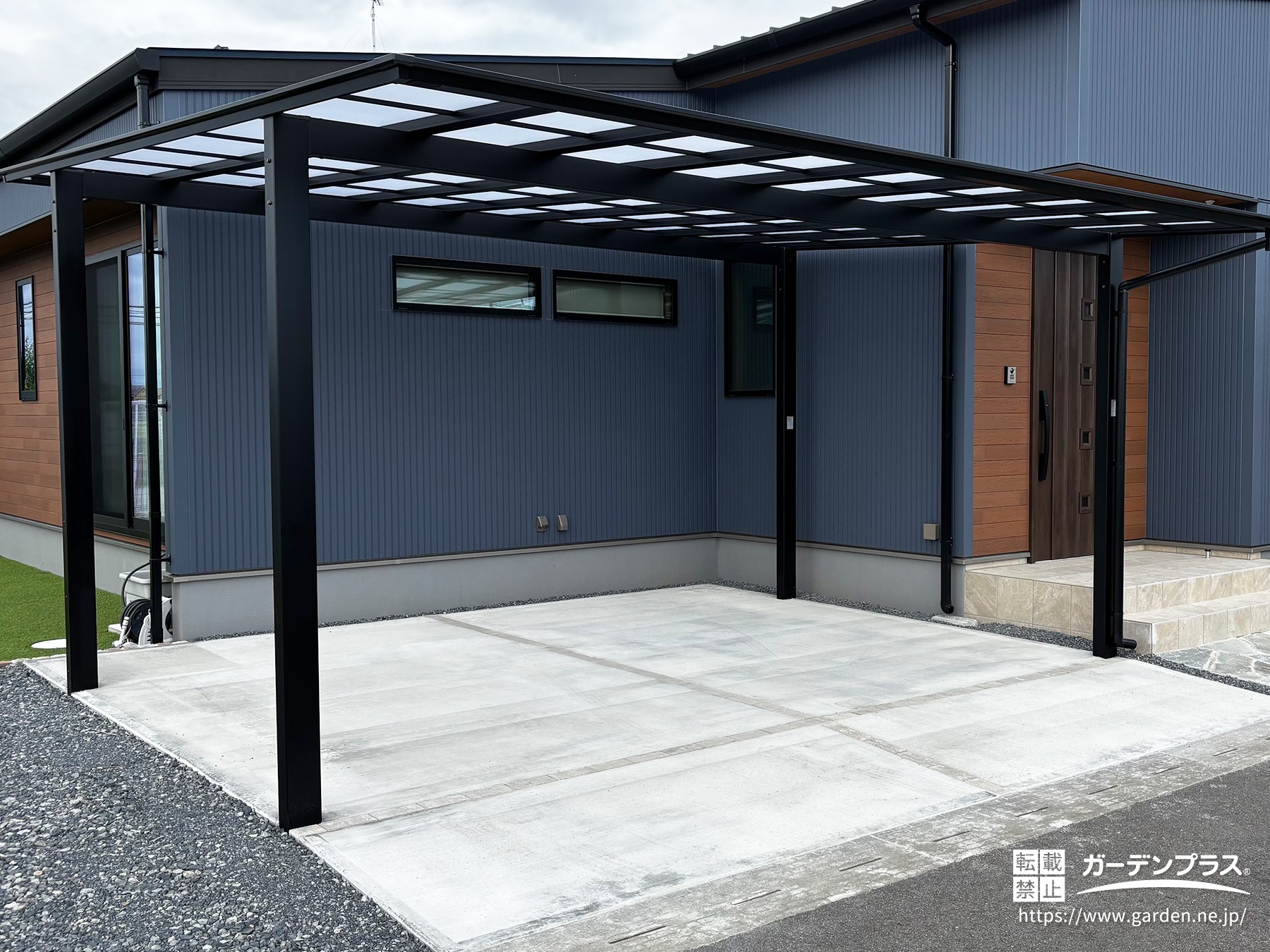 カーポートは「リクシルのネスカF」を採用。ネスカは従来のカーポートよりも高い柱を標準として設定しております。