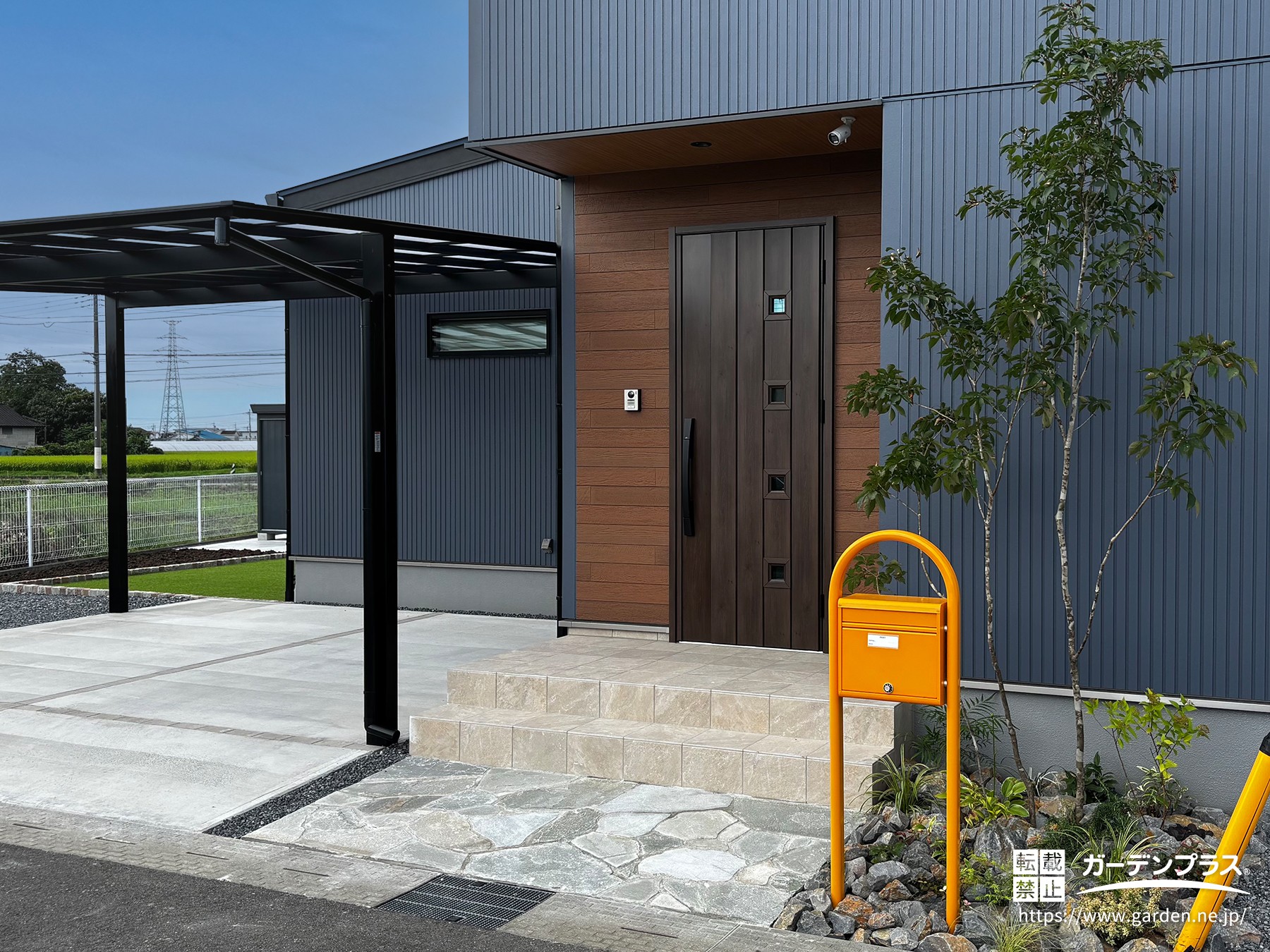 入口をオープンにして、シンプルかつ華やかに。おしゃれなポストや植栽をワンポイントで入れてみました。