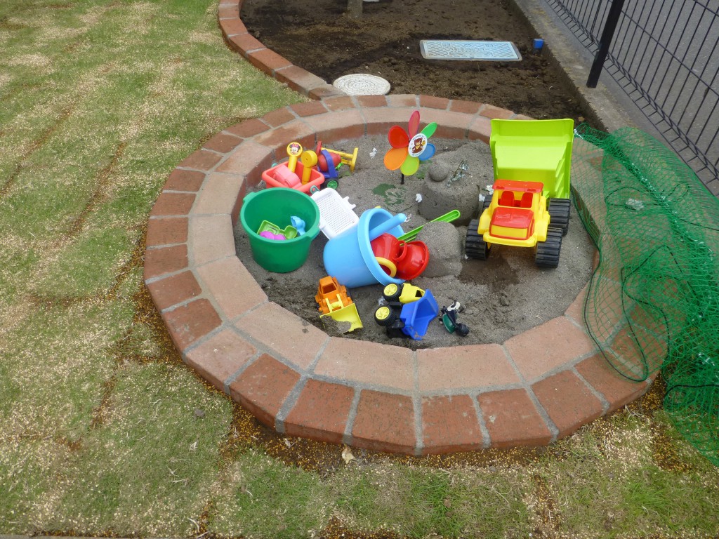 砂場スペースなどどうでしょうか?公園に行かなくてもお庭でたのしく砂場遊びができるのでお子様も喜ばれるかと思います。