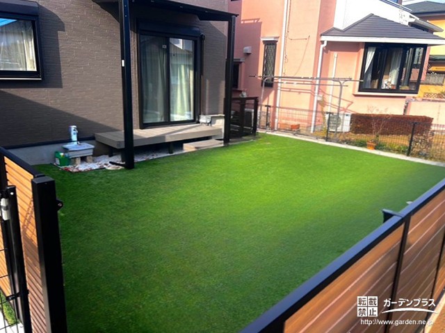 お庭全体に人工芝を施工いたしました。