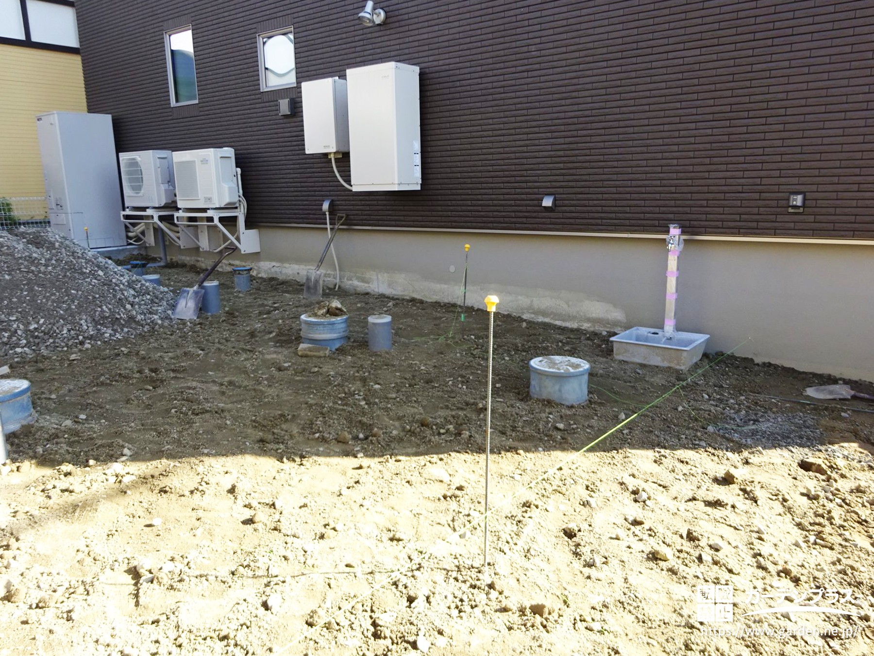 駐車場側もコンクリート打設のための下地を作っていきます。