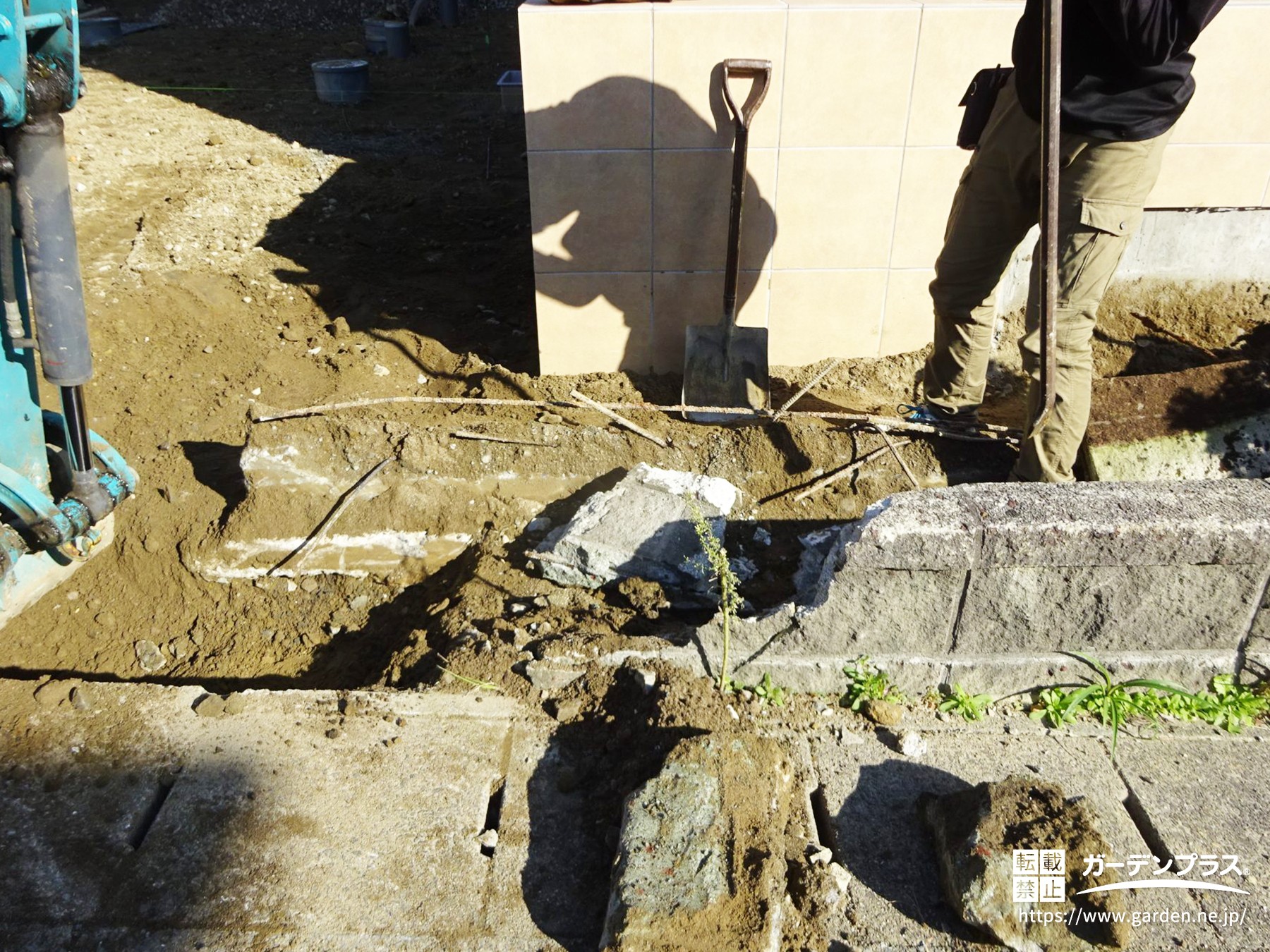 まずタイルポーチ前の既存擁壁を部分的に解体します。