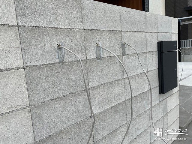 このあとコンクリートブロックに接着剤となるモルタルを塗り、タイルを貼って仕上げる。