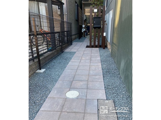 今の現状のコンクリートからコンクリート平板のアプローチを作成して、お住まいの入り口にふさわしい通り道らしいデザインにしました。
