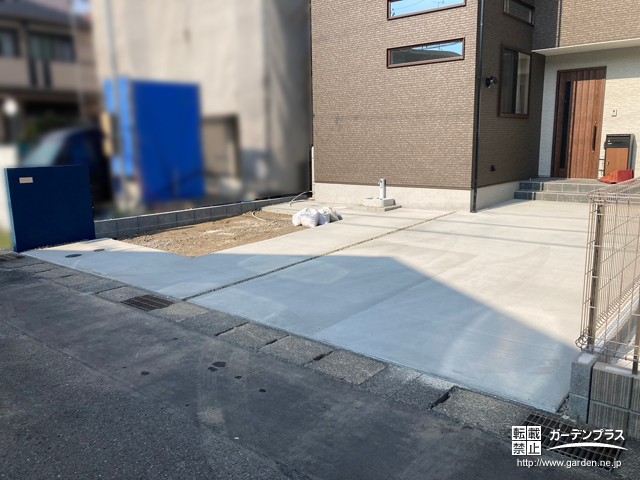 ∴ オリジナル門柱・土間・外構施工後のガレージのための工事